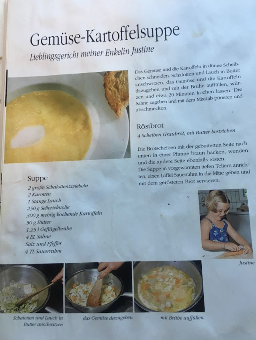Potato Carrot Soup A comforting, creamy soup with root vegetables. Ingredients 2 large shallots 2 carrots 1 leek 250g celery root Potatoes Butter 1.25 L chicken stock 4 tablespoons cream Instructions Dice (2 large) shallots, (2) carrots, (1) leek, and (250g) celery root. Peel and chop potatoes into cubes. Sauté the shallots and leek in butter until softened. Add the carrots, celery root, and potatoes. Stir to combine. Pour in (1.25 L) chicken stock and bring to a boil. Reduce heat and simmer until all vegetables are tender. Blend until smooth (or leave chunky if preferred). Stir in (4 tablespoons) cream and season to taste. Notes Can substitute vegetable stock for a vegetarian version Celery root adds depth of flavor but can be omitted German Recipe Photo soups